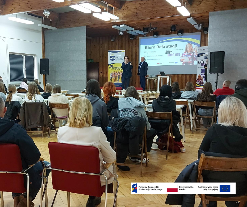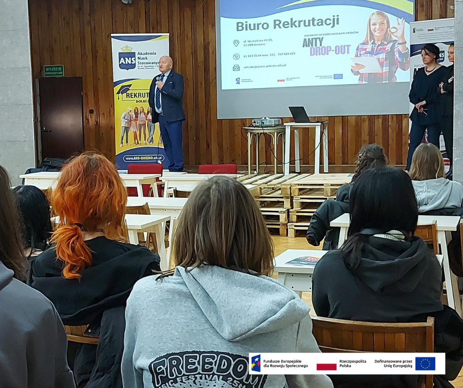 25 lutego 2026 roku przedstawiciele Akademia Nauk Stosowanych w Gnieźnie Uczelnia Państwowa odwiedzili uczniów klas maturalnych Zespół Szkół Niepublicznych w Janowcu Wielkopolskim. Spotkanie odbyło się w ramach projektu ANTY DROP-OUT, którego głównym założeniem jest wspieranie młodzieży w podejmowaniu świadomych decyzji dotyczących dalszej edukacji i planowania kariery zawodowej.