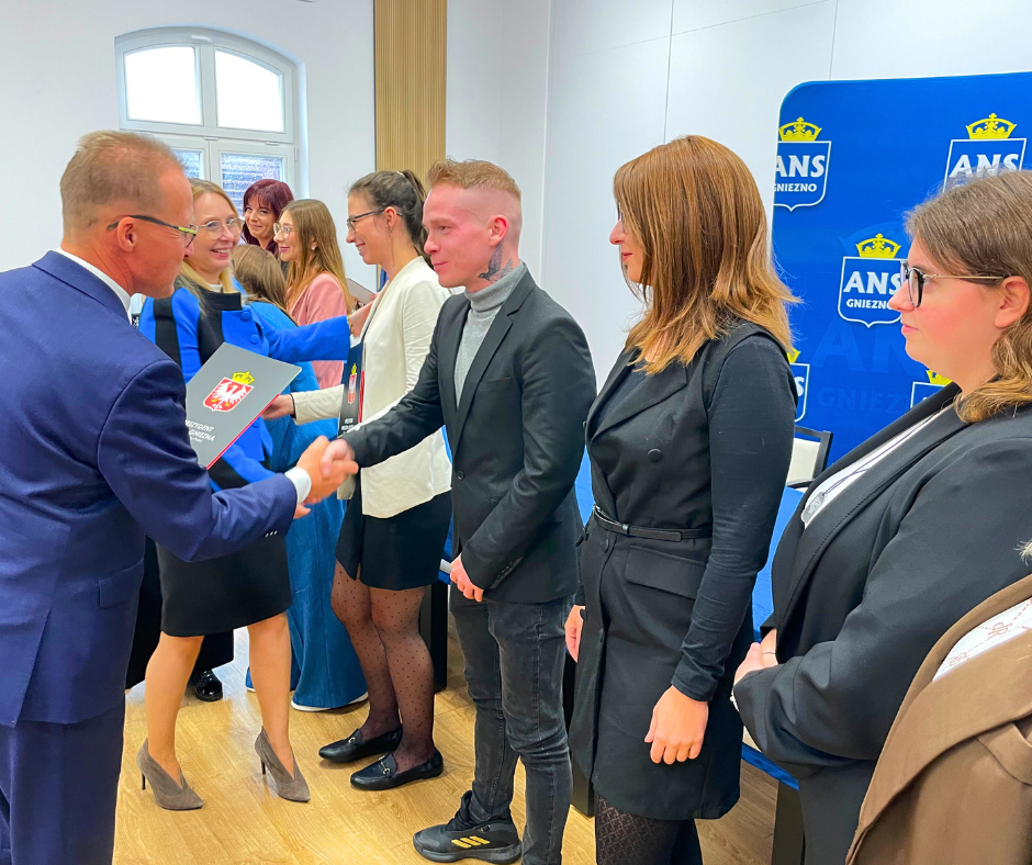 W dniu 30 października br. w murach naszej uczelni Prezydent Miasta Gniezna, Pan Michał Powałowski, wręczył 16 stypendiów naukowych studentom gnieźnieńskich uczelni publicznych. Wśród nagrodzonych znalazło się 9 studentów Akademii Nauk Stosowanych im. Hipolita Cegielskiego w Gnieźnie Uczelnia Państwowa.
